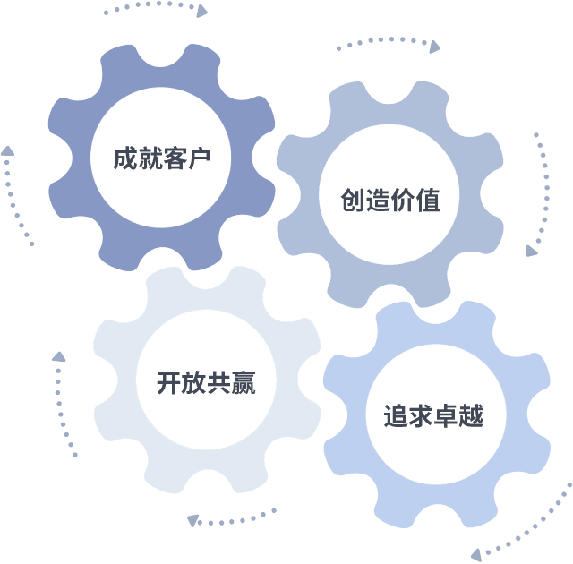 成就客户是一切决策的出发点,,,,创造价值是衡量所有工作的标准,,,追求卓越是Bevictor伟德1946做事做人的态度,,,,开放共赢是Bevictor伟德1946的格局也是最终的结果。。。。价值观的齿轮环环相扣,,推动着组织里的每个人不断向前。。